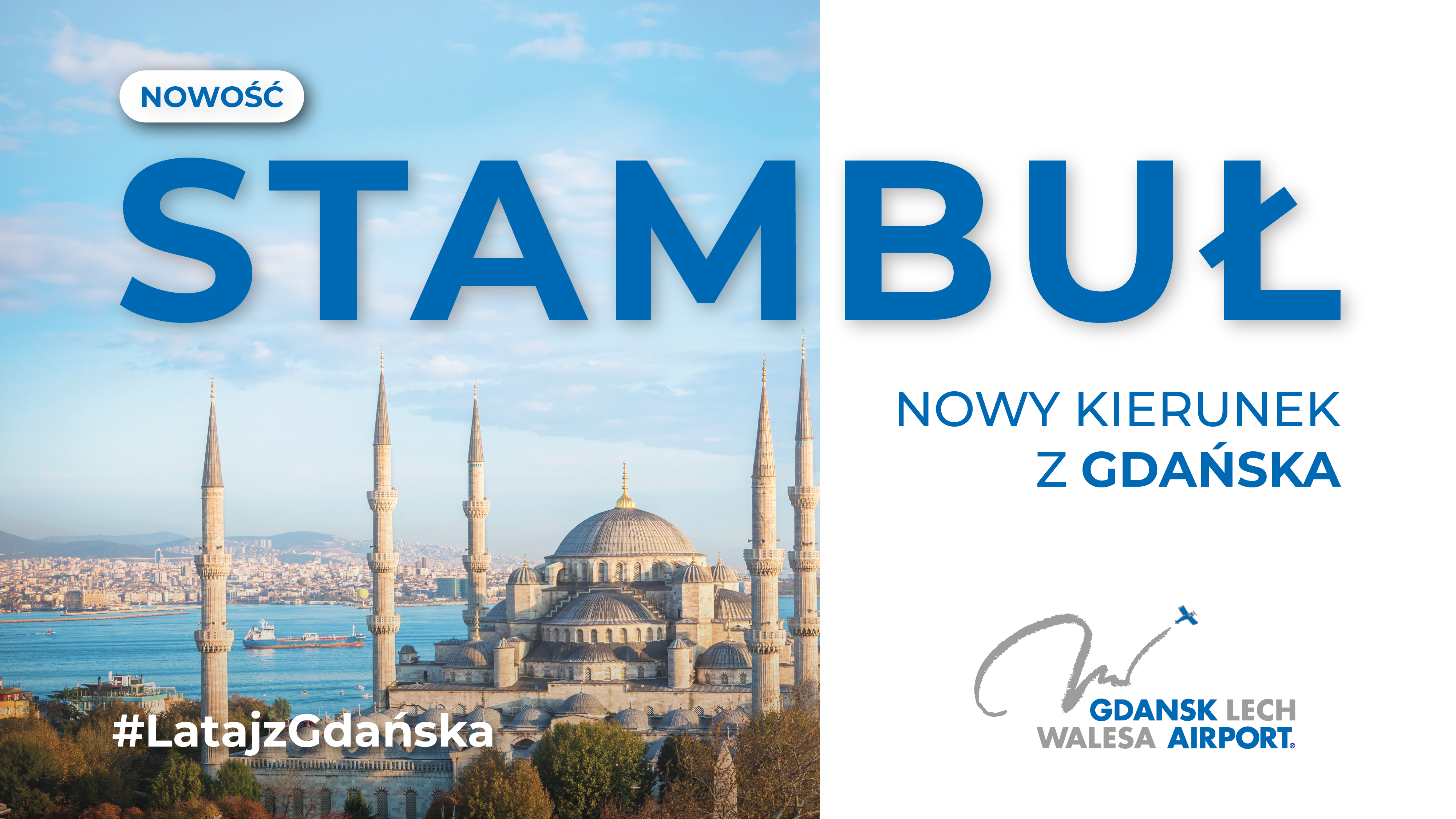 Z radością informujemy, że od 14 stycznia 2026 roku z Portu Lotniczego Gdańsk im. Lecha Wałęsy polecisz bezpośrednio do Stambułu – dynamicznego miasta na styku Europy i Azji. Nowe połączenie realizowane będzie przez Polskie Linie Lotnicze LOT, cztery razy w tygodniu: w poniedziałki, środy, piątki i niedziele.