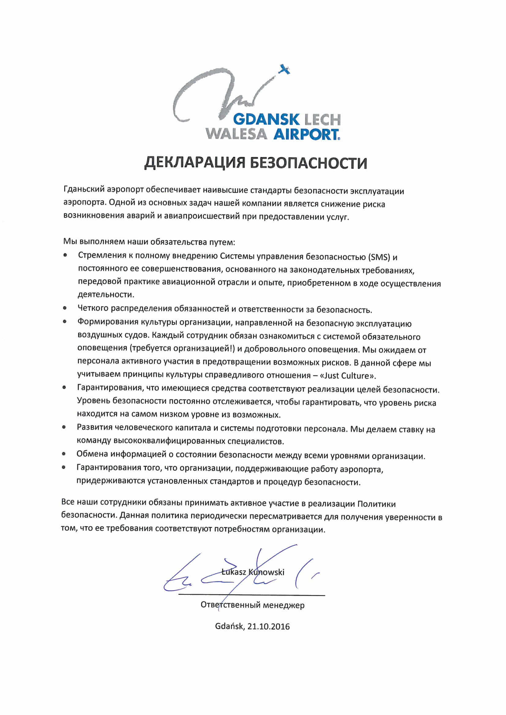 Декларация безопасности - Аэропорт Гданьск